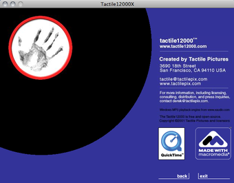 Tactile12000 est un lecteur de MP3 qui prend l'aspect de deux platines de mixages. Toutes les options d'un tel outil sont fidèlement reproduites: lecture de deux MP3 en même temps, possibilité de scratcher, crossfader, etc...